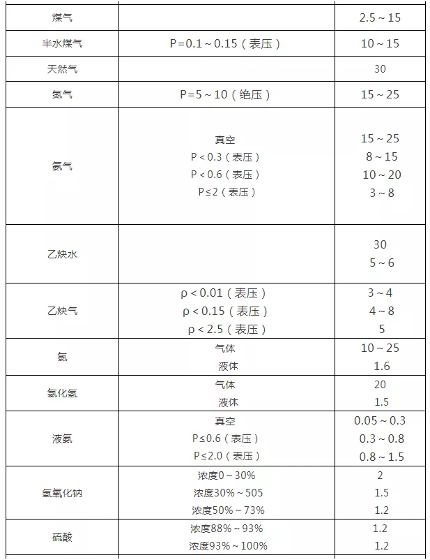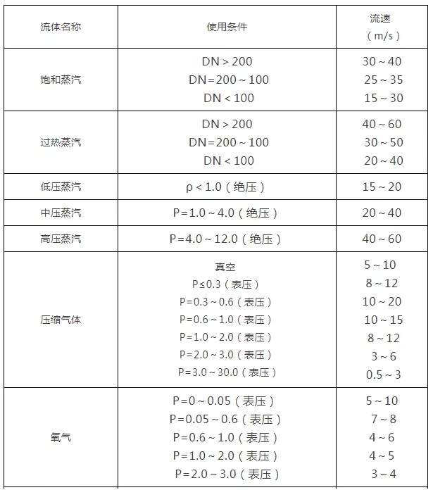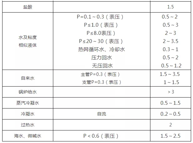 2.各種介質常用流速一覽表